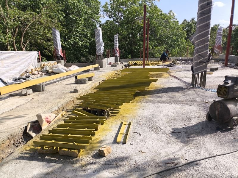 تجهیز کارگاه در ماه اول اتفاق افتاد و بعد از راه اندازی برق و آب در زمین کلنگی سابق عملیات اجرایی آغاز شد. خاکبرداری و اجرای اسکلت بتنی در دو ماه اول انجام شد. بعد از آرماتوربندی و اجرای اسکلت با تمام تمهیدات لازم از جمله کنترل نتایج آزمایشات بتن و میلگرد در حضور ناظرین پروژه، اسکلت بتنی با ستونهایی با ارتفاع بیش از ۴.۵ متر در نیمه خرداد ماه به اتمام رسید. تیغه چینی و اجرای وال پست کارخانهای از دیگر مزیتهای این پروژه بود.
