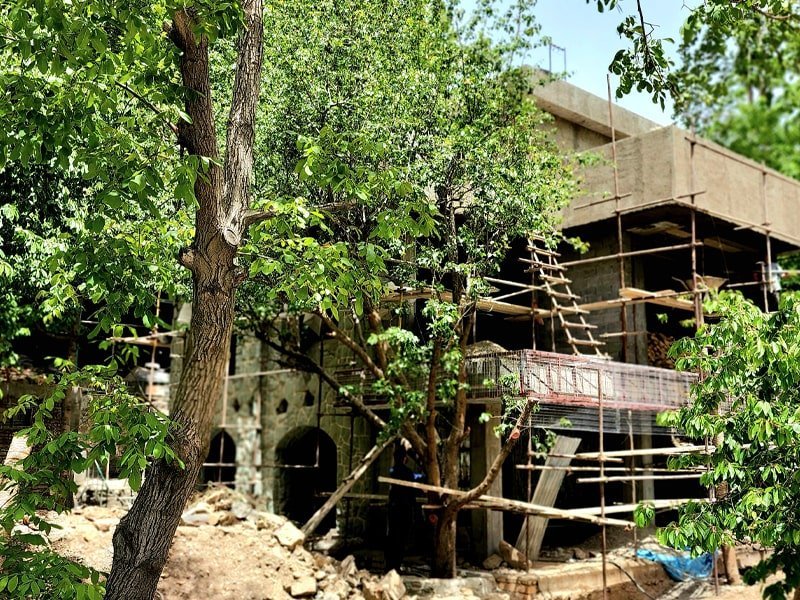 پروژه با توسعه اسکلت بتنی از طرف جنوب عمارت قدیمی آغاز شد و در ادامه به اصلاح اسکلت عمارت قدیمی و درجاسازی و بازسازی سقف ها و کلیه فضاهای داخل عمارت قدیمی منتهی شد. تابستان ۱۴۰۰ بتن ریزی شمع ها و فونداسیون سازه جدید آغاز شد و به مدت ۱.۵ سال (تا پایان سال ۱۴۰۱) ویلایی مدرن با نوسازی پلان معماری و تاسیسات مکانیکی و برقی و تمامی تجهیزات از جمله در و پنجره و کابینت تحویل کارفرمای محترم گردید.